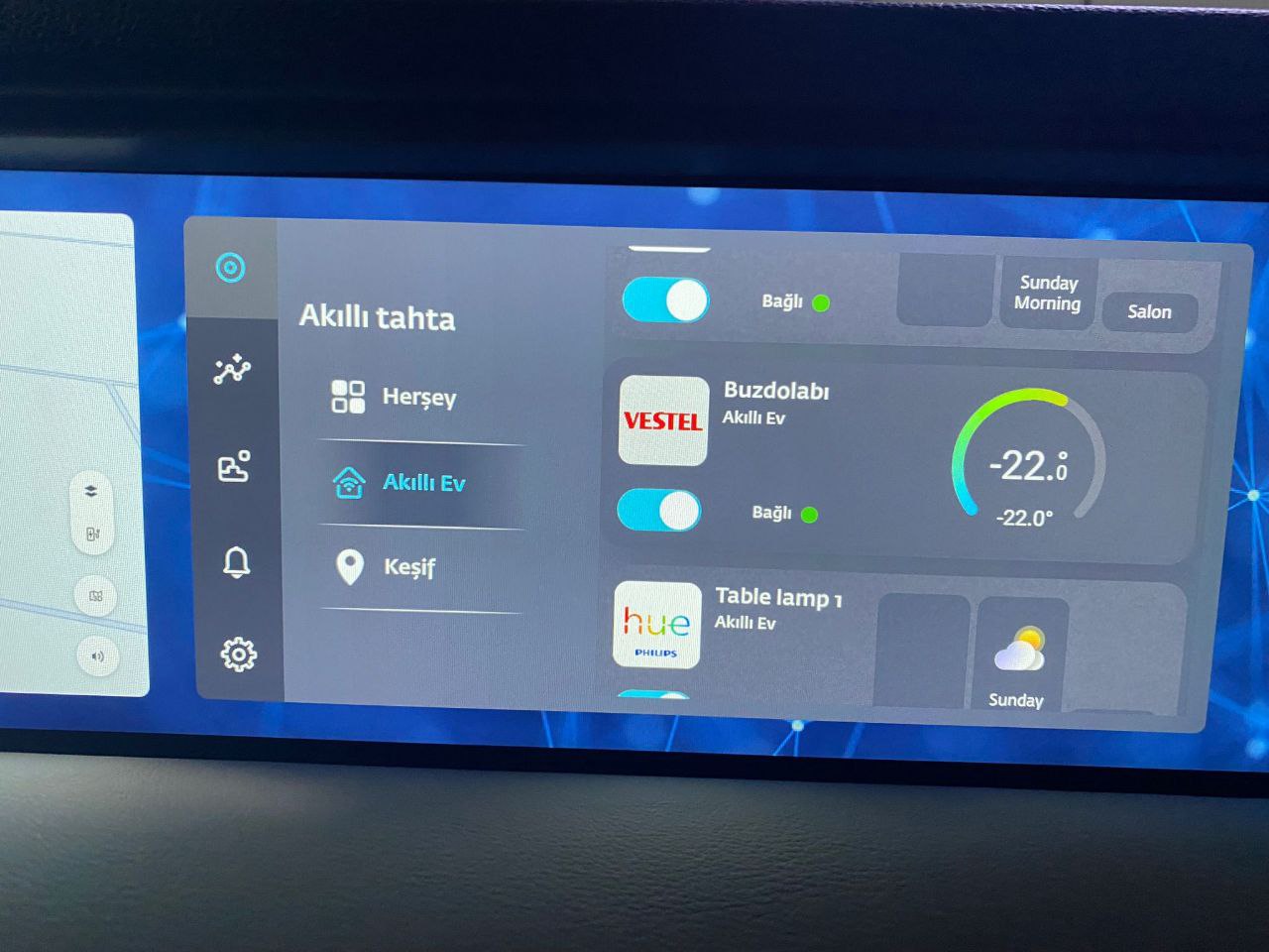 Projenin en inovatif yönü sadece Vestel Evin Aklı uygulaması ile cihazların kontrol edilmesinden ziyade kullanıcının araç içersinden sesle ya da ekran üzerinden de cihazlarını görüntüleyebilmesi ya da kontrol edebilmesidir.